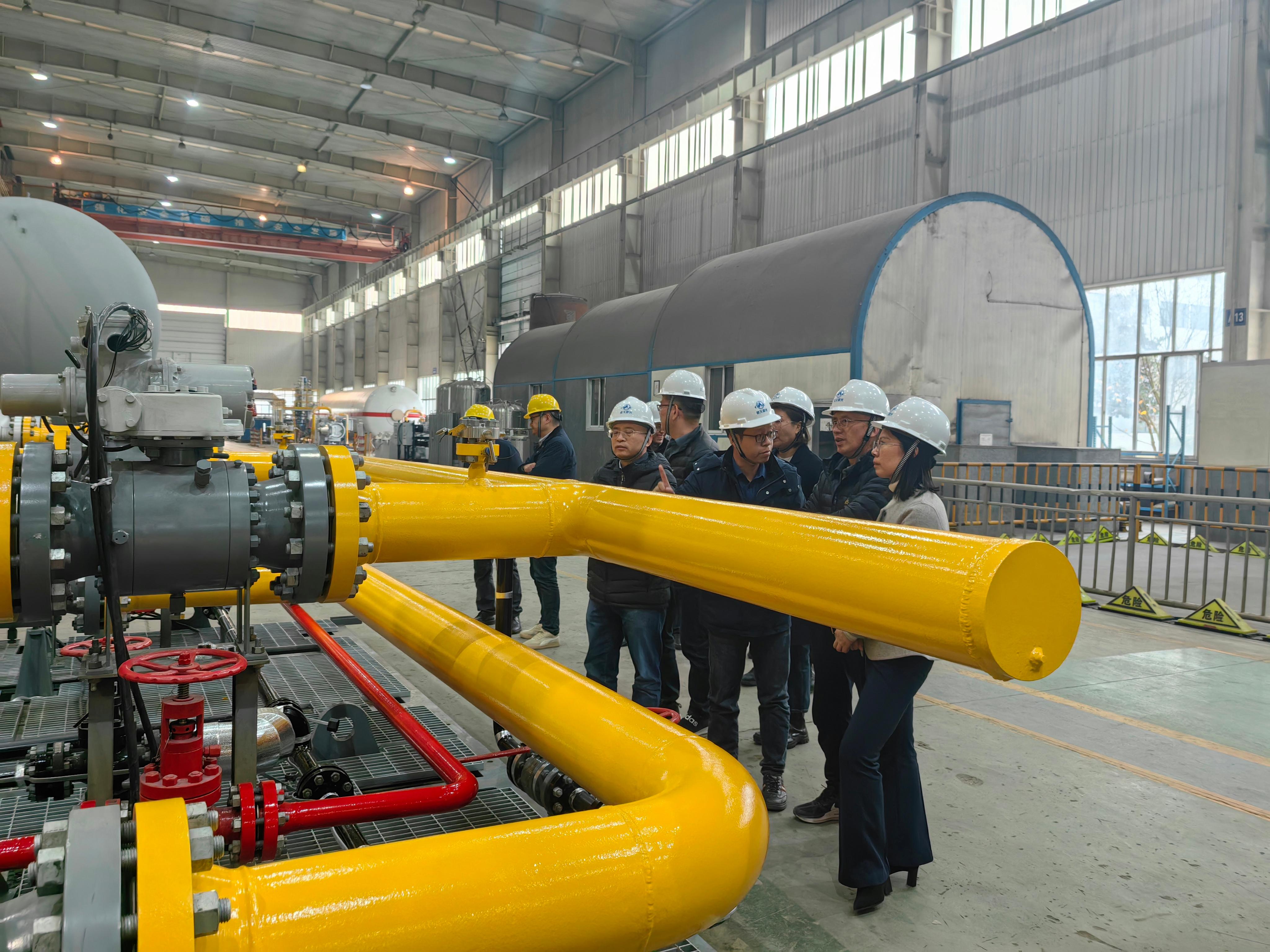張曉艷對蔡總一行的到訪表示熱烈歡迎,對國家管網集團建設項目管理分公司多年來對公司的大力支持表示感謝,希望雙方加大合作力度和深度,在加強長輸管線領域合作的同時,引領重要設備國產化及重要技術創新,共同為國家能源行業發展貢獻力量。化機分公司總經理毛長鈞介紹了分公司歷史及生產資源情況,希望雙方充分利用各自優勢,圍繞“新型環保過濾分離器”、“站場非標設備撬裝模塊化”、“LNG冷能綜合利用”、“氫能儲運”等方向開展合作。蔡朝輝對公司的生產制造能力表示高度認可,對公司在以往工程建設項目上做出的貢獻表示感謝,希望公司在后續項目中一如既往給予支持。