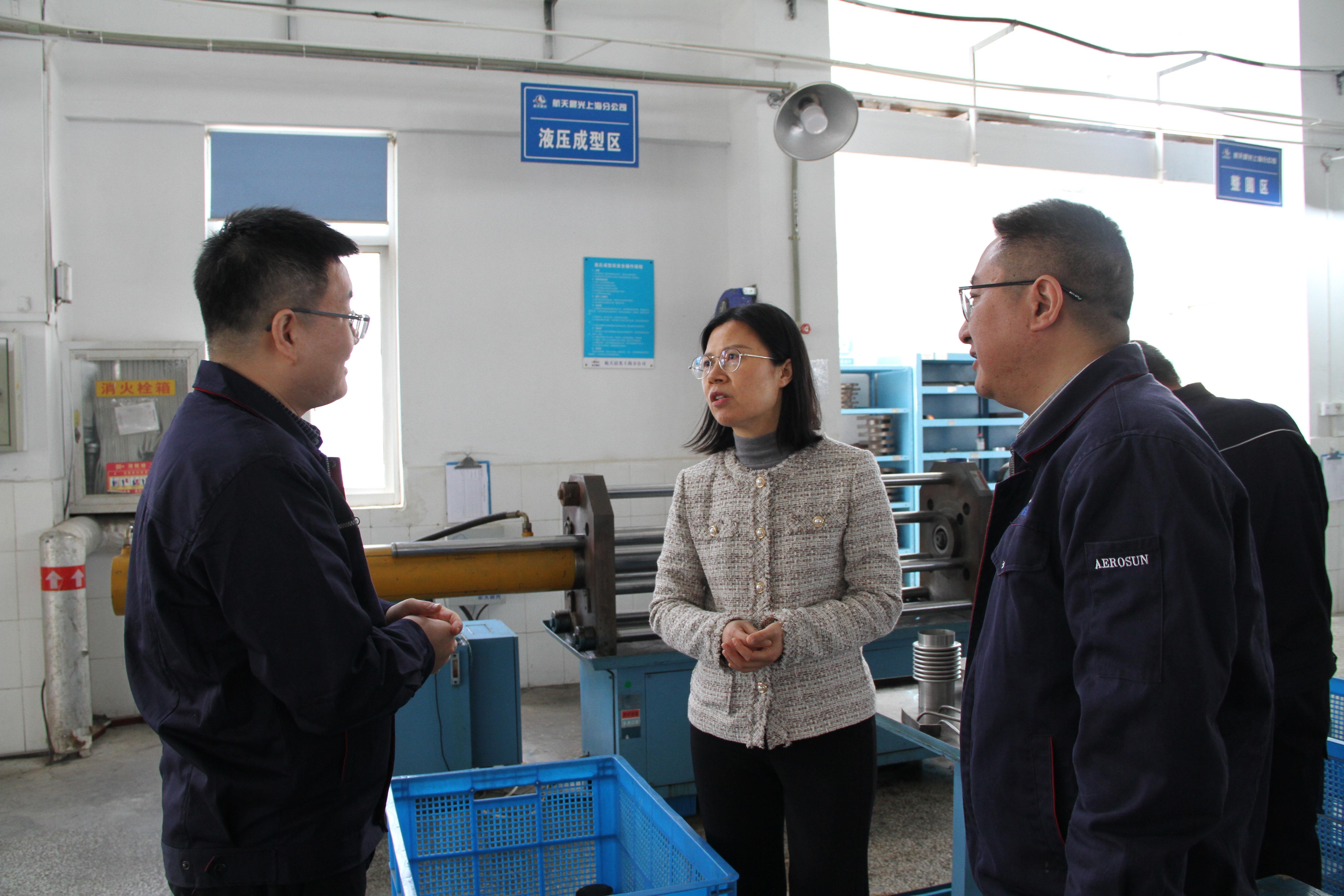 張曉艷一行深入上海分公司生產(chǎn)車間,實地查看燃氣管工段、工業(yè)管工段、實驗室和潔凈工房,以及氨分解、高壓配電房等重點風險區(qū)域,詳細了解分公司科研生產(chǎn)、在手任務、產(chǎn)品質量管控、新產(chǎn)品自主研制和安全生產(chǎn)等情況。