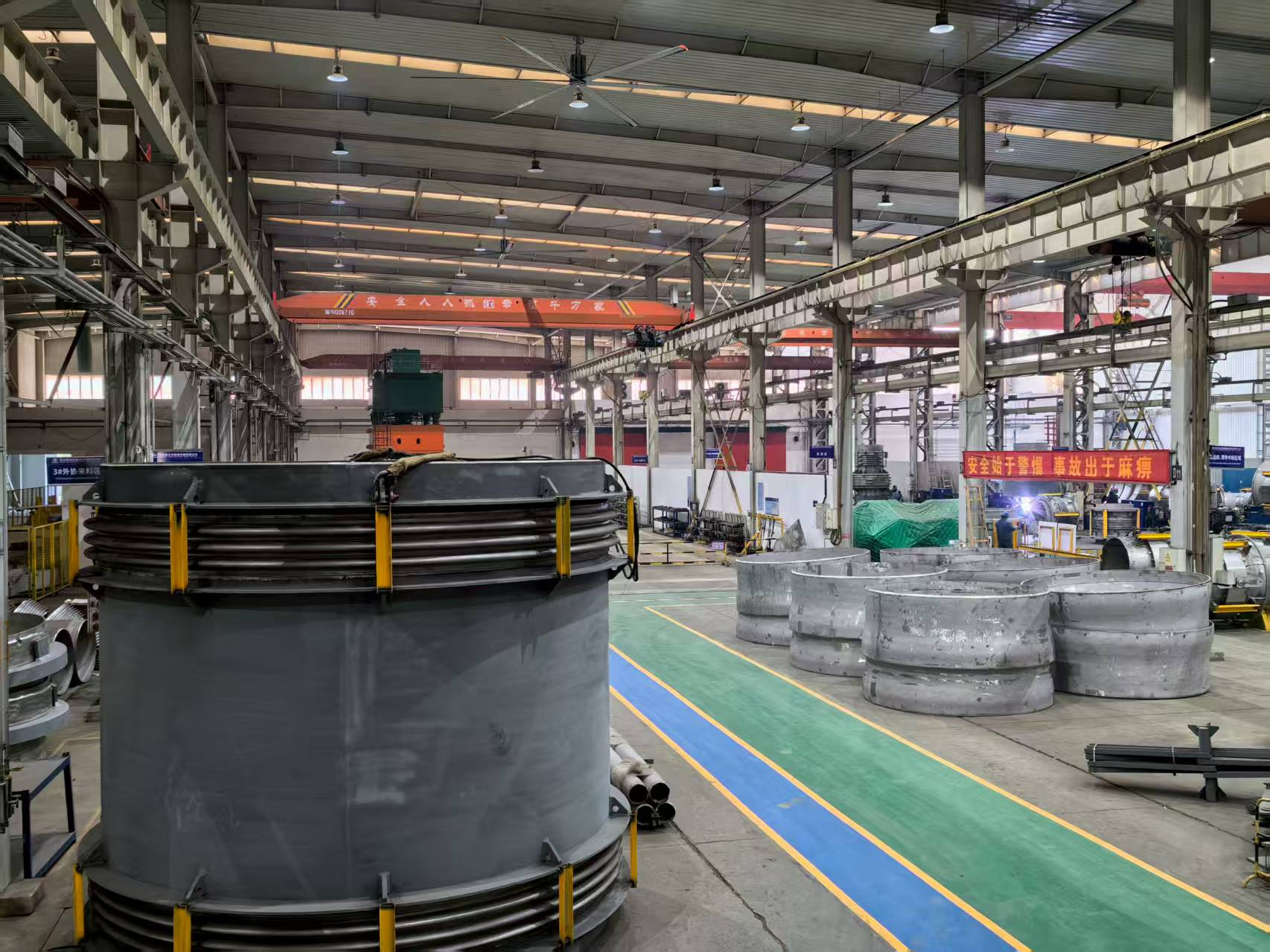在焊接工位,焊槍噴射出熾熱的藍(lán)色火焰,映照出焊工們?nèi)褙炞⒌难凵瘢拔伊粝聛戆堰@活干完”,在焊裝工段經(jīng)常能聽到這樣樸實的話語,透露出大家對工作的高度負(fù)責(zé)和奉獻(xiàn)精神。在試壓工位,水壓試驗機轟鳴作響,操作員屏息凝神,目光緊盯不斷攀升的壓力表指針,他們深知每一次保壓測試都是對產(chǎn)品密封性和強度的終極考驗,容不得半點閃失。在組裝平臺,員工們沾滿油污的雙手一絲不茍地裝配著零部件,確保產(chǎn)品尺寸精確到毫米。為了趕項目節(jié)點,保管組爭分奪秒,確保關(guān)鍵零件第一時間辦理入庫并送達(dá)工位。物流組更是挑燈酣戰(zhàn),車間內(nèi)運輸車輛的引擎聲幾乎晝夜不息,大家只為準(zhǔn)時發(fā)車,將產(chǎn)品按時送往客戶現(xiàn)場。
