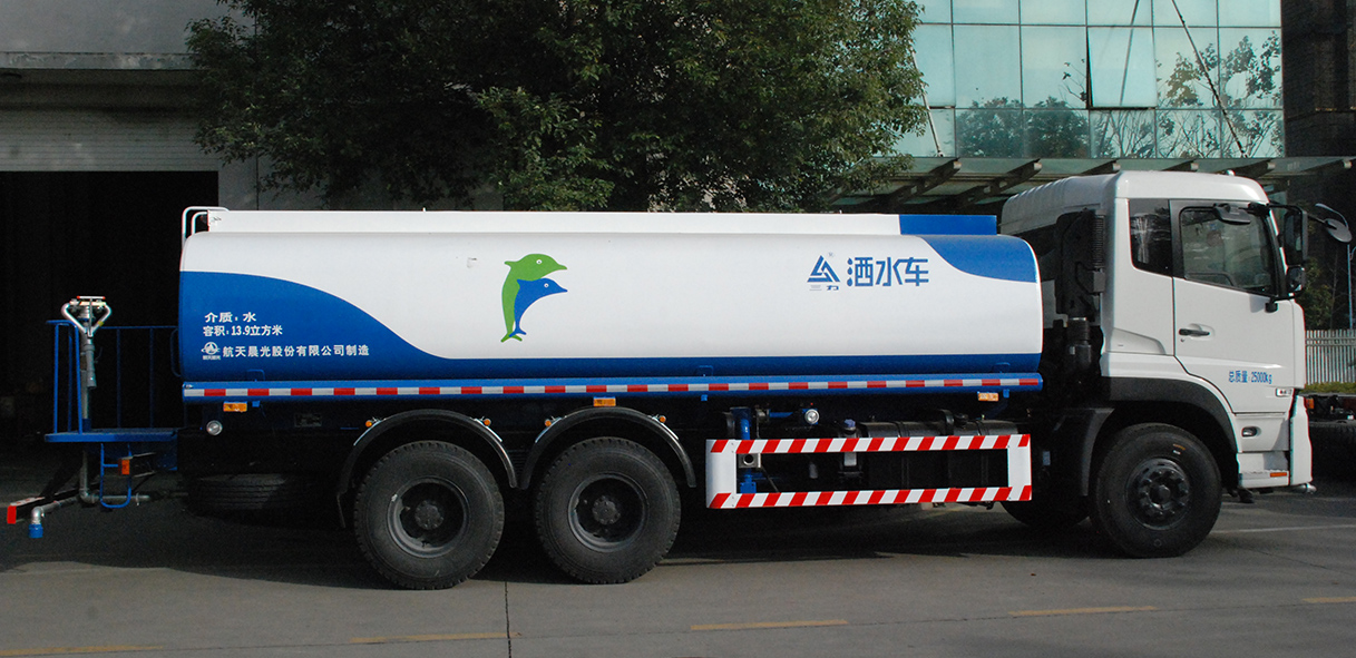 CGJ5258GSSE5/CGJ5258GSS02型灑水車具有五大功能:a. 對路面進行沖洗、灑水;b.運輸功能;c. 應急消防;d. 對樹木園林進行噴洗、澆灌養護;e. 作移動泵站。是專門用于城鎮道路、公路、橋梁、工程、工地等路面沖洗、灑水、降塵以及園林綠化噴洗和澆灌的專用車輛。